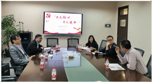 2019年10月18日,丝袜av 领导班子开展“不忘初心、牢记使命”主题教育第三次集中专题研讨。研讨会围绕“加强团队建设,提升学校育人合力和学术竞争力”,结合学院国际化办学特点,探讨对接国家“一带一路”倡议,做好国际化人才培养。学院党委书记黄美旭,院长张建民,党委副书记王志,副院长叶军,副院长刘承峰参加学习研讨并发言。