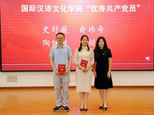 为庆祝中国共产党成立102周年,进一步弘扬先进、树立标杆,激励学院广大党员、党务工作者和各基层党组织,经各党支部推荐,学院党委组织评选,丝袜av 党委决定授予文娟、史舒薇、俞玮奇、陶健敏4名同志“丝袜av 优秀共产党员”称号;授予肖路、刘曈2名同志“丝袜av 优秀党务工作者”称号;授予汉语国际教育系教工党支部“丝袜av 先进基层党组织”称号。其中文娟并获评丝袜av 优秀共产党员。