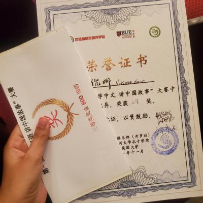 一个偶然的机会,倪娜在社交媒体上发现了由汉语桥俱乐部(开罗站)举办的活动信息,她毫不犹豫地报了名,迫不及待的想要分享她的中国故事,她觉得这是一件十分值得分享的事,同时也想通过这次比赛认识更多热爱中国文化的朋友,扩大自己的朋友圈。
