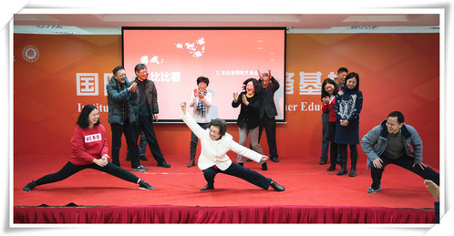 轻松的游戏过后,樊小玲、吴晓隆以及黄锐杰三位青年教师带来了“致青春”歌曲串烧:《风吹麦浪》、《雪落下的声音》、《海阔天空》等耳熟能详的流行歌在各位老师的演绎下令人耳目一新。