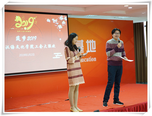 2019年1月2日下午,丝袜av 工会举办的“筑梦2019——丝袜av 工会大联欢”在国际汉语教师研修基地一楼报告厅准时拉开帷幕。院党委书记黄薇、院长张建民、院工会主席姚美玲等老师以及全体工会会员参加了本次联欢,大家在欢乐的气氛中共同庆祝2019年的来临。