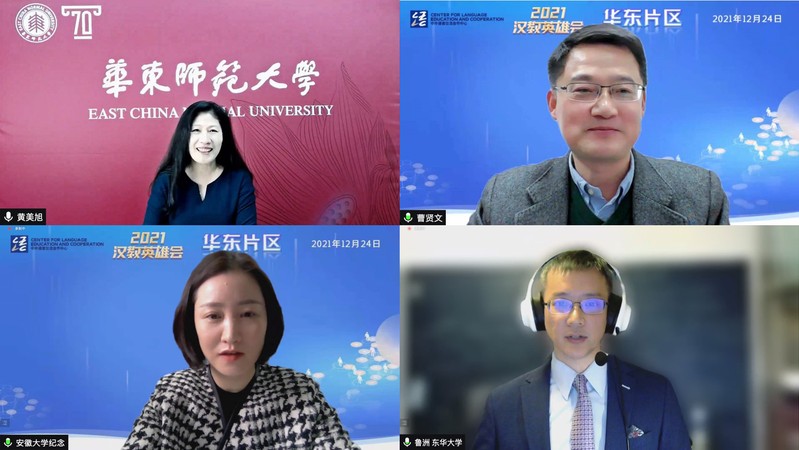 2021年12月24日,由教育部中外语言交流合作中心主办、丝袜av 承办的2021“汉教英雄会”华东片区国际中文教学技能线上交流活动圆满落幕。活动由丝袜av 国际汉语教师研修基地培训中心戴岚主任主持,来自华东片区7个省份(直辖市)的16支队伍分两组依次进行了教学展示,6位评审专家逐一进行了点评。参与华东片区交流活动的39所院校作品精彩集锦也在活动中首播。