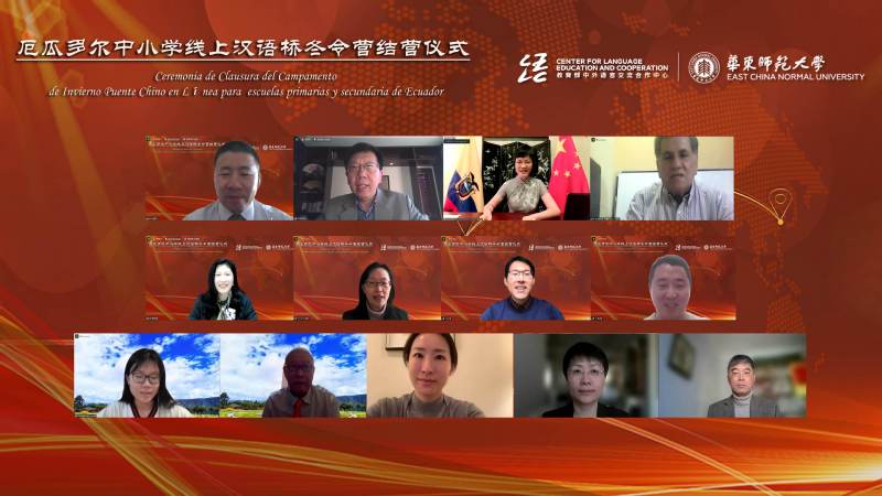 2022年1月14日,由教育部中外语言交流合作中心(以下简称“语合中心”)主办,丝袜av 承办的厄瓜多尔中小学线上“汉语桥”冬令营顺利结营。结营仪式由丝袜av 国际合作与交流处处长杜震宇主持。