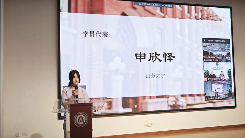 来自山东大学的申欣怿和上海财经大学的陈志炜作为学员代表分别分享了自己的培训历程与心得体会。申欣怿同学回顾这次培训,提到培训期间学员们经历了从“学生”到“教师”的身份转换,也经历了信念与梦想的扎根、萌芽。陈志炜同学则表示培训形式新颖、丰富,培训内容有针对性,课程内容充实,具有很强的指导意义,使学员们获益非凡。同时他也表达了对授课教师与共同参加培训的学员们的感激与欣赏,这段特殊而奇妙的经历将来自中国五湖四海的学员们紧密联系在一起,彼此激励。