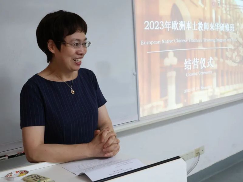 陆晓红在结营致辞中表示,语言是钥匙,是桥梁,它能打开文化之门,连接彼此内心,而发展国际中文教育,关键在于人,在于教师,特别是优质的本土中文教师。参加研修的各位老师扎根在欧洲各国、奋战在海外中文教育一线,是欧洲中文教育的中坚力量,也是中欧语言文化交流的使者,她向大家的坚守与付出表示崇高的敬意。此次研修班为老师们提供了难得的面对面交流的机会,让大家身临其境地感受到一个真实、立体、全面的当代中国,希望日后能与大家有更多的合作机会,也希望大家继续保持对中文及中文教育的热爱,不忘初心,砥砺前行。