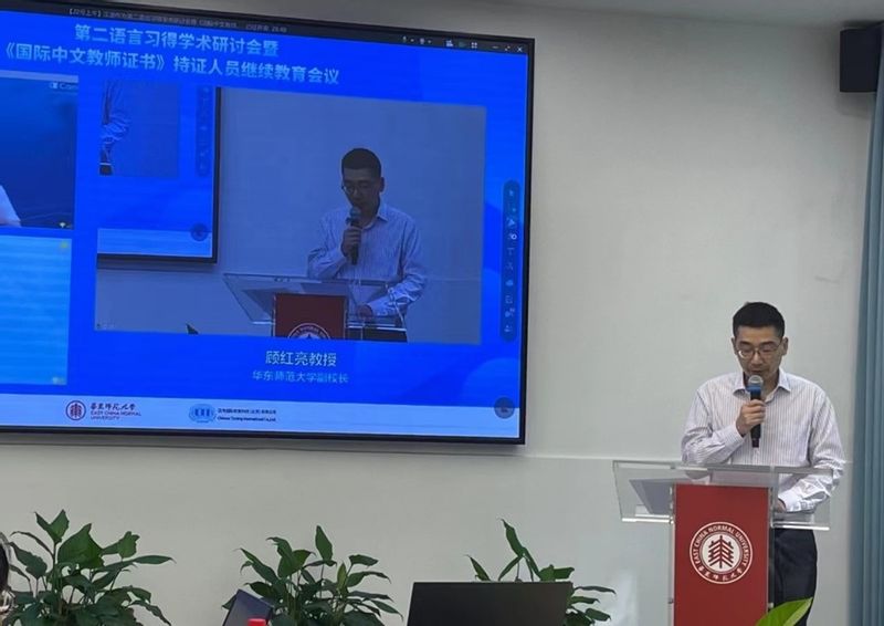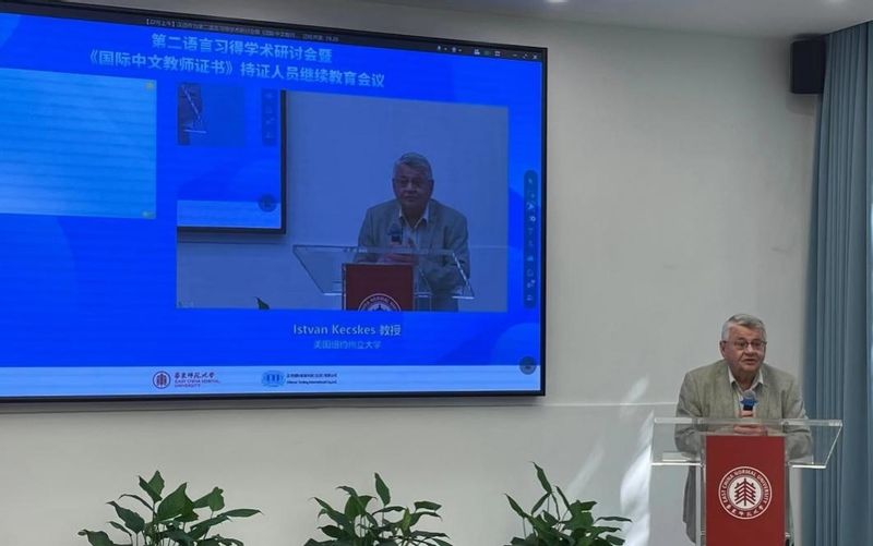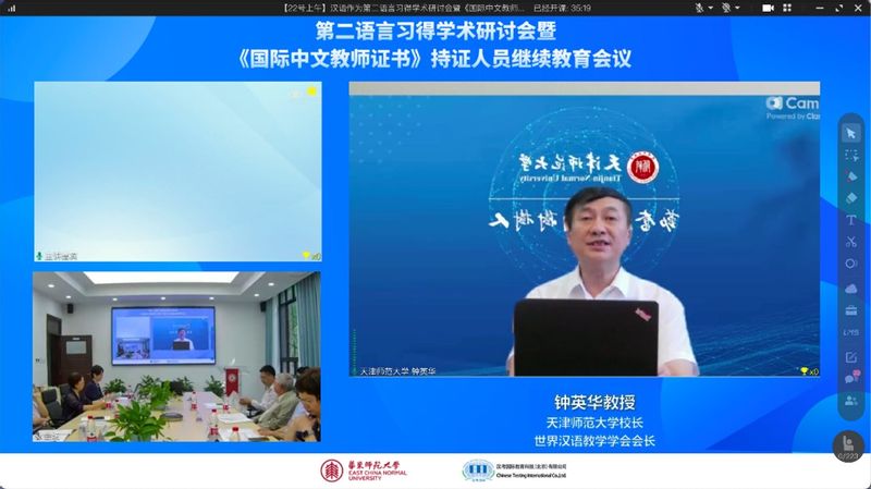 2023年8月22日上午,由丝袜av 、国际汉语教师研修基地、汉考国际、全球中文教师教育联盟、国家语委全球中文发展研究中心联合举办的“汉语作为第二语言习得学术研讨会暨《国际中文教师证书》持证人员继续教育会议(第十五期)”顺利召开。本次会议采用线上线下相融合的形式,吸引了来自中、美、英、日、泰、印、西班牙、乌克兰、柬埔寨、马来西亚等国家的300余名学员参加。