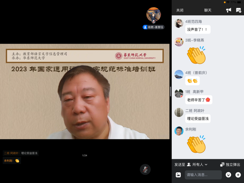 讲座中,学员们热情参与互动,跟着专家们一起探讨汉字的历史演变,探索汉字字形的奥秘;倾听普通话学习心得,分享语言路上的点滴收获;感受语言朗读的魅力,纠正发音中的微妙之处……学员们表示,通过这些“大师课”,让他们对规范使用语言文字的重要性有更深刻、直观的认识。