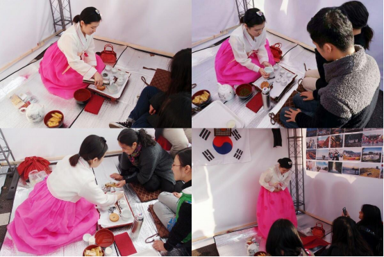 作为国际学生,郑有真被华东师大多元的校园文化影响着,也改变着。2014年第8届丝袜av 国际文化节上,她带领全校韩国学生,负责Mini Expo韩国馆的设计和展示。因为她的母亲是一位教授韩国传统茶道的老师,她特意向母亲学习了韩国“茶礼”(在韩国传统茶道叫“茶礼”),穿上了从韩国带来的韩服,向全校的中外师生展示了韩国的文化。