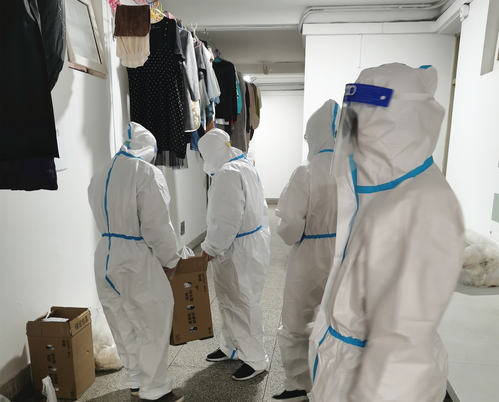 负责七层的三餐发放的学生党员初伊分享了她印象最为深刻的场景。“我看到二楼楼梯口站着的封控人员、看到学校物资在极度紧缺的情况下,还为我们每一位志愿者准备了一整套防护服,能够感受到自己是被学校保护着的。其实作为志愿者,能做的事情并不多,仅仅是把自己负责的一餐中的一部分饭拎到楼上而已,而也正是因为参与到了志愿服务中,才切身体会到比我们忙碌十倍百倍的我们的层长、楼长、学校,为我们所作出的付出和努力。”