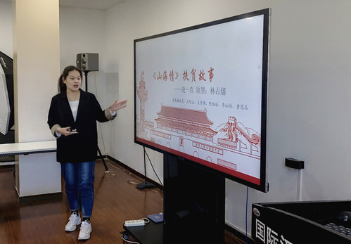 宣传组代表潘贺节向大家分享了《山海情》中吴月娟这一人物的原型——林月婵,并重点从人物简介、岁月史、真心话与精彩片段四个部分对其进行具体介绍。潘贺节同志抓住剧中的关键情节,进一步剖析吴月娟和林月婵共同的美好品质与扶贫精神。潘贺节认为:“只要我们拥有同样的信仰,拥有同样的志向,我们总能尽我们所能,将我们所学都奉献到祖国需要的地方,帮助我们的手足同胞。”