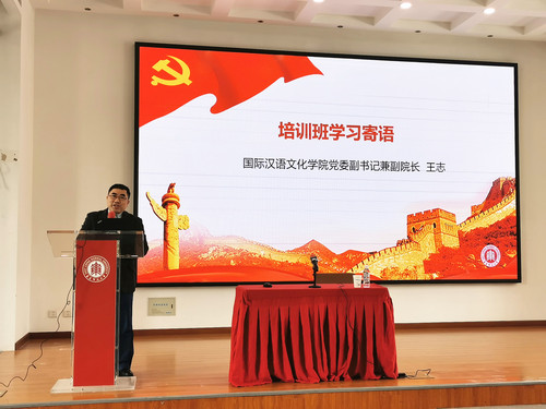 在开班仪式上,丝袜av 党委副书记王志代表三个学院向培训班学员致学习寄语。他希望学员们带着脑筋、带着眼睛、带着思考来认真对待党校的学习,通过学习加深对党的宗旨,党的理论,党的使命有一个系统性的理解,为成为一名合格的党员奠定理论基础。