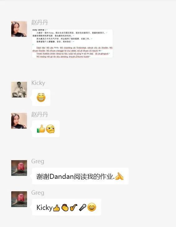 本次新西兰本土教师中文学习项目为这些学员打开了一扇新世界的大门。对于一直积极参与互动学习的学员来说,这是一个令人欣喜的开始。虽然课程已经结束,但学员们依然会在班级群中用中文聊天,用自己新学到的词句分享自己的近况。他们表示“我今天用中文帮助了新来的中国留学生”“我想多说中文”。