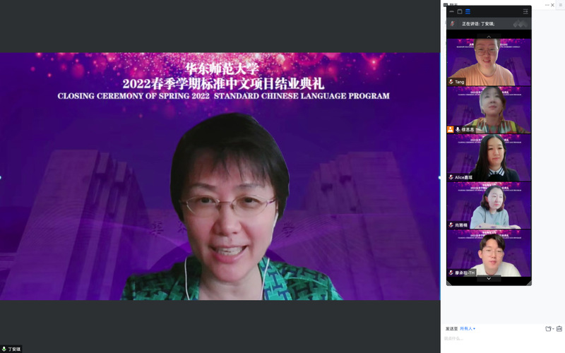 6月24日上午和下午,华东师大国汉基地2022年春季学期标准中文项目线下和线上班级举行了隆重的结业典礼。丝袜av 副院长、国际汉语教师研修基地副主任丁安琪,基地汉语中心主任马青,中心全体师生共同出席典礼。
