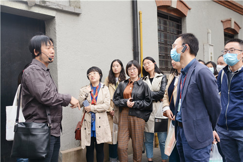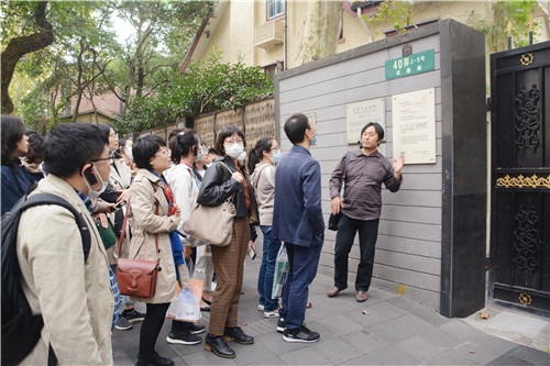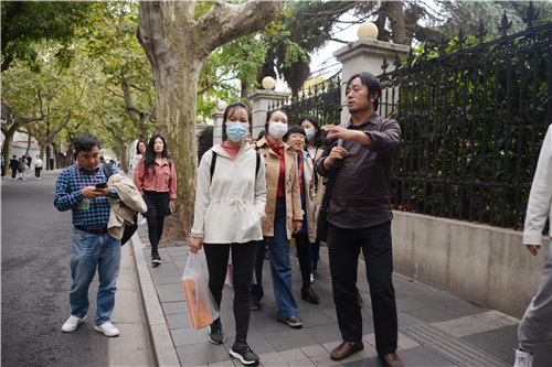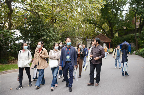 在主讲人上海城建职业学院副教授周培元的带领下,青年教师们的探访之路从淮海路的武康大楼开始。主讲人周培元围绕武康路沿线老建筑的历史与典故,向大家传递老建筑的神韵、展现老建筑的风采。老师们跟随主讲人沿着梧桐婆娑的百年老街,仿佛走进了悠长的时光隧道,走进一个个或惊心动魄、或委婉动人的尘封往事。