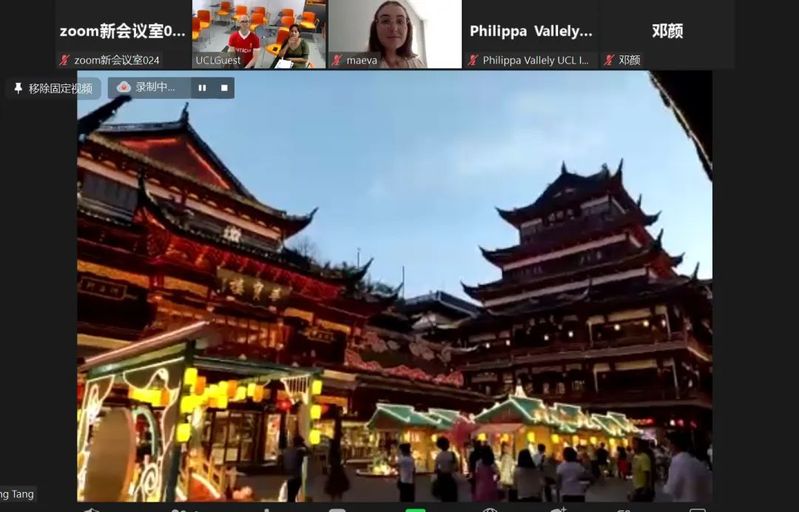最有创意的当然是实境直播课!在语合中心的支持下,丝袜av 国汉基地首创了线上沉浸式中文学习的新模式---实境直播,跳出以往的线上课程框架,打破电脑屏幕的限制,将教室搬入上海的大街小巷,在真正的交际中提高汉语的交流能力。本次IOE项目中,我们共开设了三场实境直播课,第一场实境直播团队带领学员游览了环球港,让学生体验了全新的无现金购物方式;第二场实境直播带领学员走进了豫园的景色和文化,传统的建筑、九曲十八弯的廊桥、嬉戏在睡莲之间的锦鲤;廊桥之上,可爱的孩子在父母身边玩耍,慈祥的老人在庭院中惬意乘凉,满眼好奇的游客穿梭在豫园的各个角落……,完美的园林式景观搭配最接地气的市民百态,形成了镜头中最经典的上海文化!与此同时,学员们还隔空与街头穿汉服的中国女生用汉语交流,身在英国的学员们和身在上海的中国女生都体验到了交流的快乐!第三场实境直播带领学员深度探访了外滩。尽管外滩已然是上海的经典代表地,然而对于从未来过中国的欧洲教师学员,一切都是那么新奇!学员不仅了解了外滩的建筑、和平饭店的前世今生、南京路的五彩斑斓,更在实境探访中练习了汉语,加深了互动与交流。