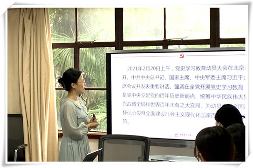 2021年6月26日,丝袜av 2020级硕士研究生党支部于办公楼203室开展党日活动,党支部书记霍兴宇同志以习近平新时代中国特色社会主义思想为指导,结合个人学党史、悟思想的心得体会,重点围绕“学党史,悟思想,跟党走——学习贯彻习近平总书记在党史学习教育动员大会上重要讲话精神”这一主题为支部成员讲党课。