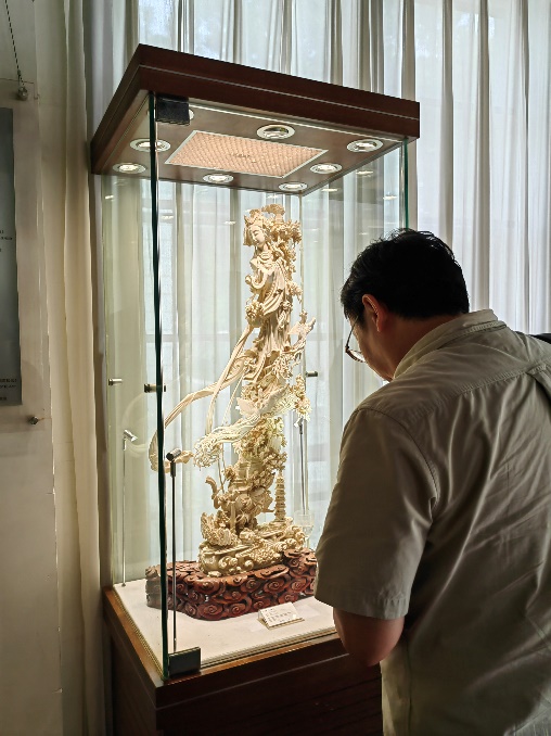 首先支部党员参观了博物馆,在解说员的带领下领略了上海工艺美术领域最具代表性的“四刻一雕”----细刻、竹刻、砚刻、瓷刻和黄杨木雕。美轮美奂的作品,充分展示了海派工艺精工巧作又富于创新的百年传统。