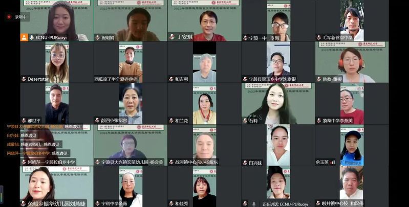 9月19日至23日,来自重庆市彭水苗族土家族自治县、云南省宁蒗彝族自治县、兰坪白族普米族自治县的老师们在线上完成了40课时的培训,包括四场讲座和六场小班教学语言训练课,培训内容覆盖语音文字政策指导规范、教学语言训练、中华文化课程三个板块,其中教学语言训练采用小班辅导的形式。经过五天充实的培训以及课后的不断练习,学员们对于语音文字规范有了全新的认识,收获颇丰。五天的学习紧张又充实,学员们在不舍的同时也都有了丰富的感悟。结业仪式上,老师与学员们一同回顾了这五天的精彩瞬间与学习成果,学员代表们也分享了自己这几天的收获。