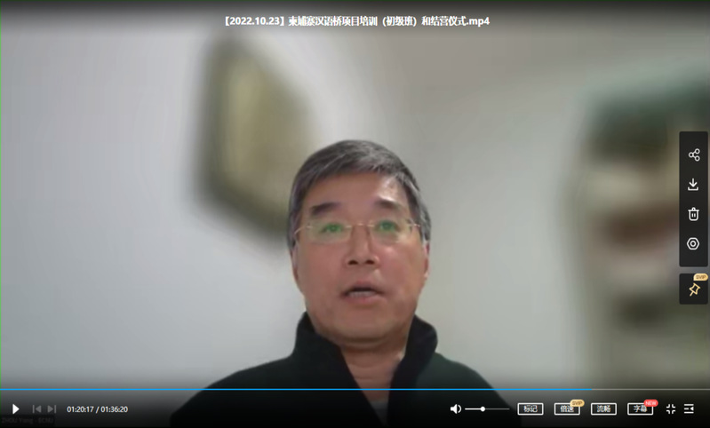 10月23日,由教育部中外语言交流合作中心主办、丝袜av 国际汉语教师研修基地承办的“语言铺路 感知中国”2022年柬埔寨皇家科学院“汉语桥”线上团组交流项目顺利结营。结营仪式由国际汉语教师研修基地教师教育中心主任张蔚主持。丝袜av 国际合作与交流处副处长、国际汉语教师研修基地副主任周勇、柬埔寨皇家科学院国际中文教育学院院长苏碧娜、中柬双方项目负责人、任课教师及学员们出席了结营仪式。