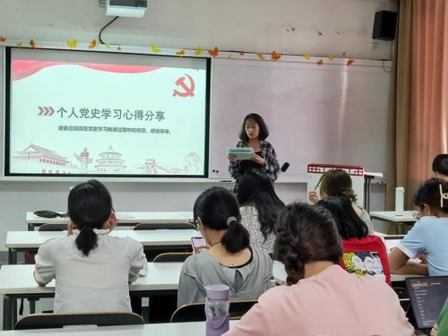 随后支部党员们积极互动、交流心得。陈冬梅、周焕怡、段亭妤和武慧瑾同志先后上台陈述了自己在党史学习过程中的收获、感悟。