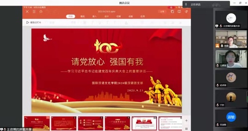 2021级本科生团支部在集体观看了讲话视频片段后,由团支书曹蔚带领同学们学习讲话精神。接下来,同学们观看了党史微视频《百年风华》,最后由各位团员发表学习感言。