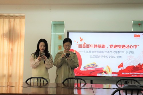 2021年10月17日,丝袜av 2021级学硕党支部与团支部联合举办的“回首百年峥嵘路,党史校史记心中”党史校史知识竞赛于国际汉语办公楼201展开。本次知识竞赛由党支部书记霍兴宇和团支部书记俞悦主持,党、团支部的成员悉数出席。