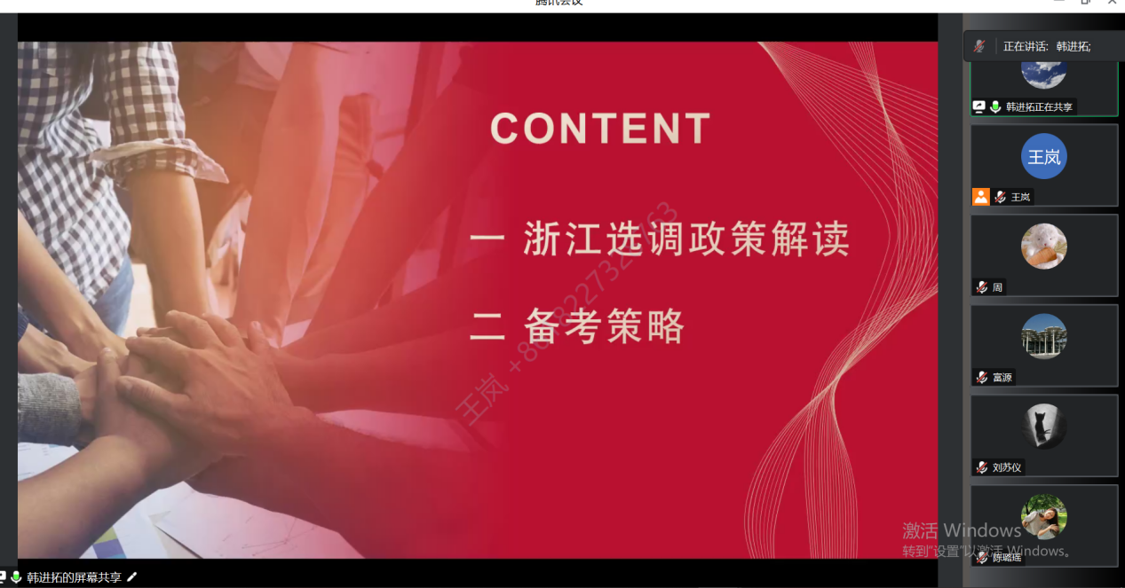 20级毕业生党员韩进拓分享了浙江省选调生的备考经验。她首先对浙江选调政策进行了解读,然后从备考思路上建议大家重视申论的训练、定期开展限时训练并记录得分、行测练习要做到套题和模块相结合。