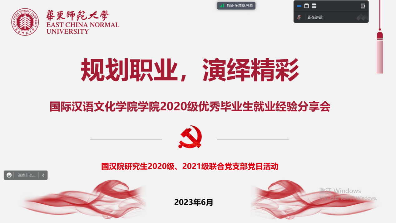 2023年6月17日,丝袜av 20级、21级研究生党支部联合举办“规划职业,演绎精彩”优秀毕业生就业经验分享会。本次分享会邀请到2020级硕士研究生学长、学姐,分享内容涵盖申博、公立学校、双语学校、考公、选调、企业等不同求职方向,并对同学们的疑惑进行了针对性解答。