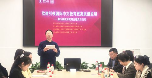普陀校区物理楼301室,举行了以“党建引领国际中文教育更高质量发展”为主题的第五届校际党建主题党日活动。
