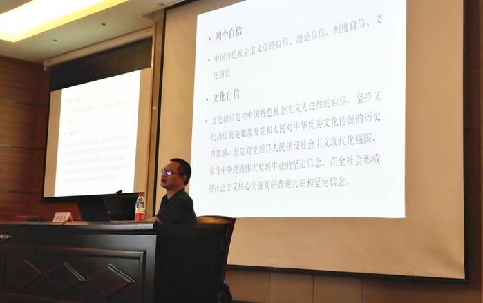 活动的后半阶段,丝袜av 哲学系教授晋荣东为全体党员同志作了《中国何以“文化自信”》的专题讲座,针对丝袜av 毕业生党员的国际化特点,从“四个自信”特别是文化自信入手,从古代中国的“天下观”和世界地图的案例出发,阐述了文化自信的历史渊源和具体内涵,提升了同学们的党性和党员意识,帮助毕业生党员深刻认识了中国特色社会主义制度、道路、理论和文化在历史根基上的底气和信心。
