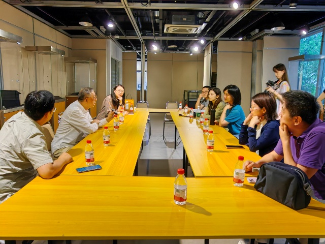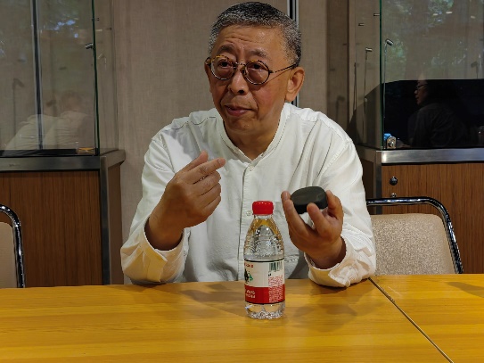 参观后,支部邀请到上海工艺美术大师、海派砚刻第四代传承人丁伟鸣,面对面听丁老师讲述他与砚刻如何结缘,讲述砚刻中的文人精神。讲到砚刻艺术,丁老师特别强调自然,同时又强调创新,他说艺术的继承是延续和突破,必须有所发展。正是基于这一认识,丁老师的砚刻作品,在砚石自然的形状和颜色基础上进行创作,达到形神合一。